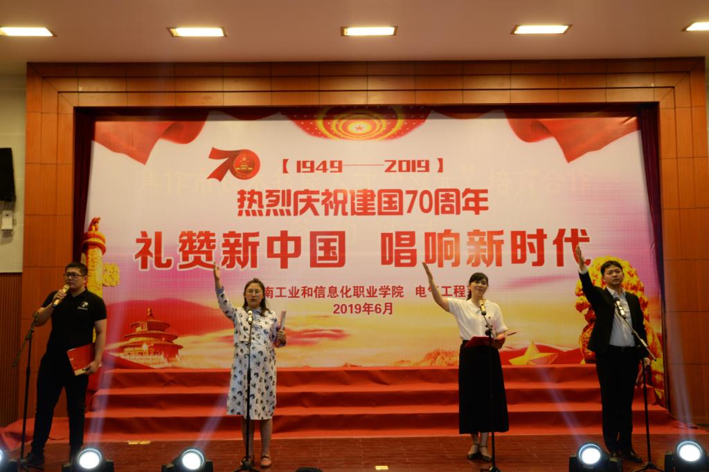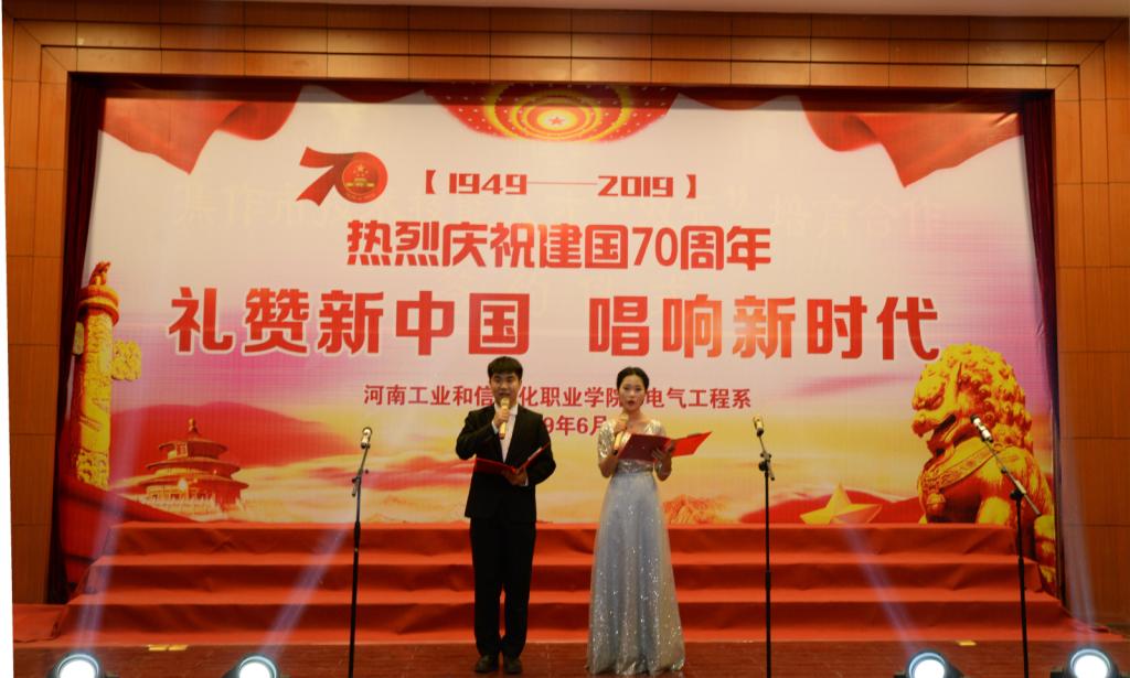 为深入学习贯彻习近平新时代中国特色社会主义思想和党的十九大精神,热烈庆祝中华人民共和国成立70周年,讴歌党和国家70年来的光辉历程和伟大成就,培育践行社会主义核心价值观,6月27日下午,我院电气工程系以“礼赞新中国,唱响新时代”为主题在学院多功能报告厅举行了一场盛大的文艺汇演。院长助理张红兵、学生处副处长韩玮,电气工程系主任焦贺彬、党总支书记屈扬以及该系全体辅导员和班主任出席本次活动并担任评委。该系17个班级的近800名师生参加了演出。