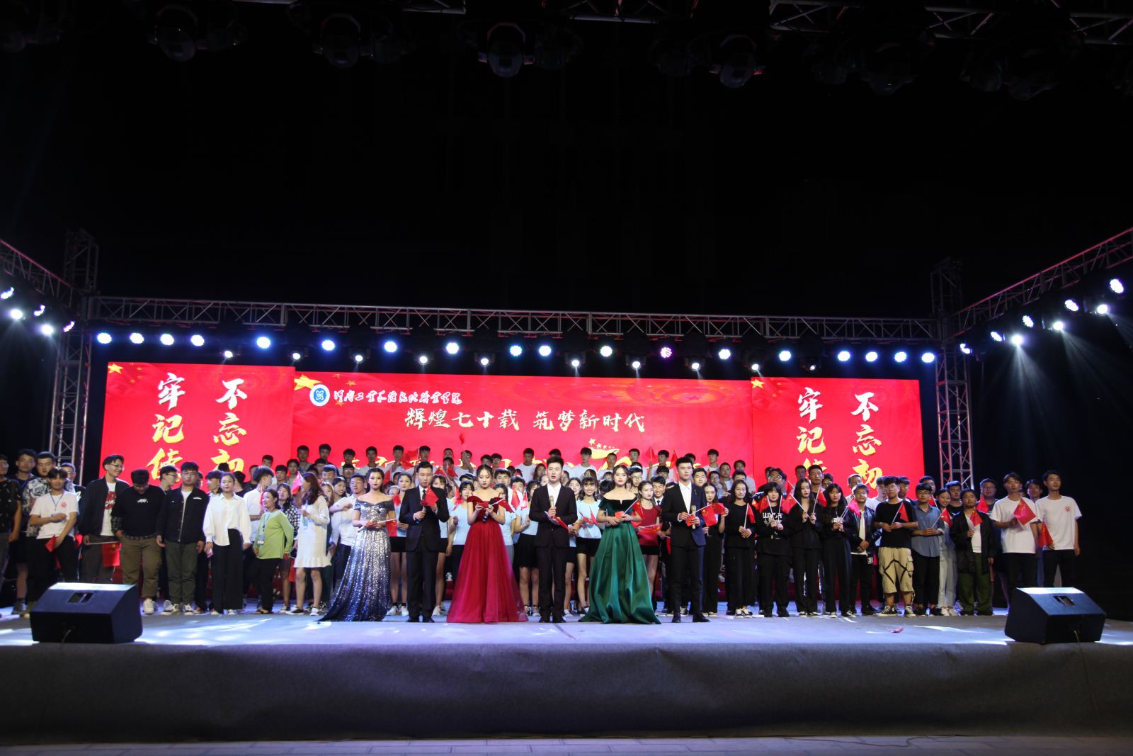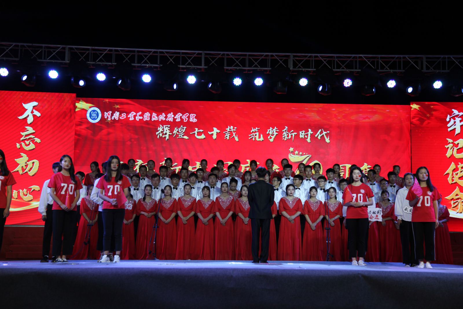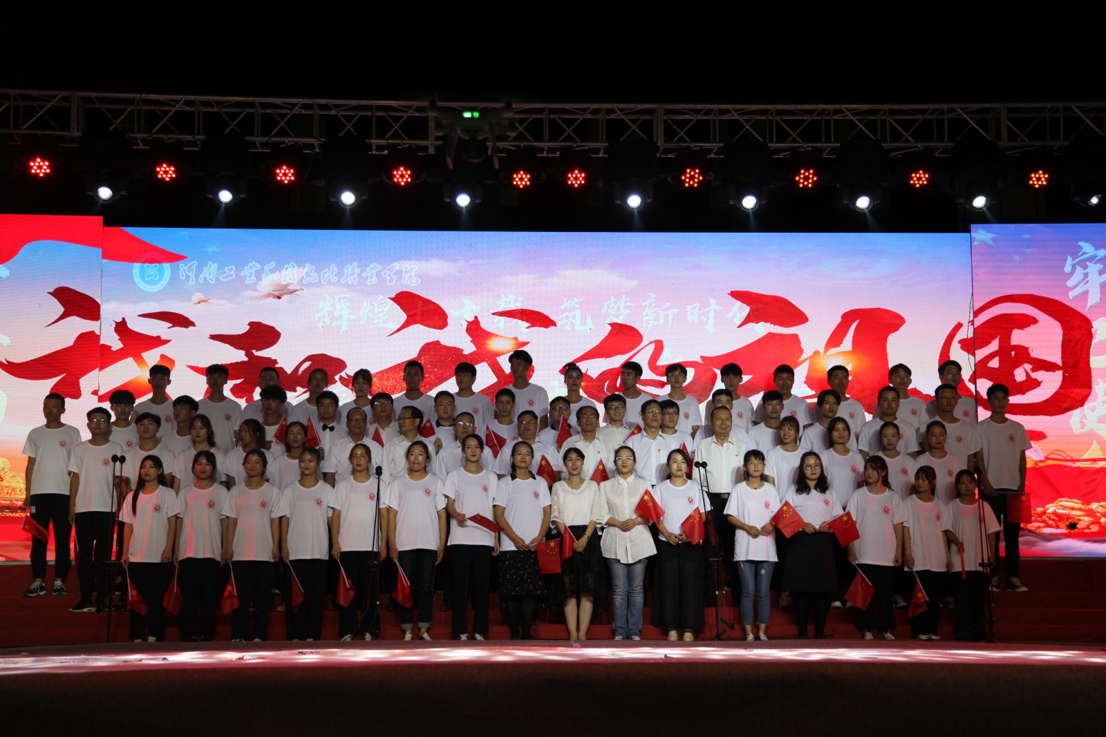 辉煌七十载,筑梦新时代。在新中国成立70周年来临之际,9月26日晚,我院在图书信息楼广场成功举办庆祝新中国成立70周年文艺汇演。院领导张树岭、毋虎城、陈荣邦、张庆伟、吕况、魏道清、张红兵出席活动并和现场师生齐声高唱《我和我的祖国》,用深情的歌声向祖国告白,共同庆祝新中国70周年华诞。学院相关职能部门及各系部负责人、新生班主任、辅导员和2019级全体新生共同观看了演出。