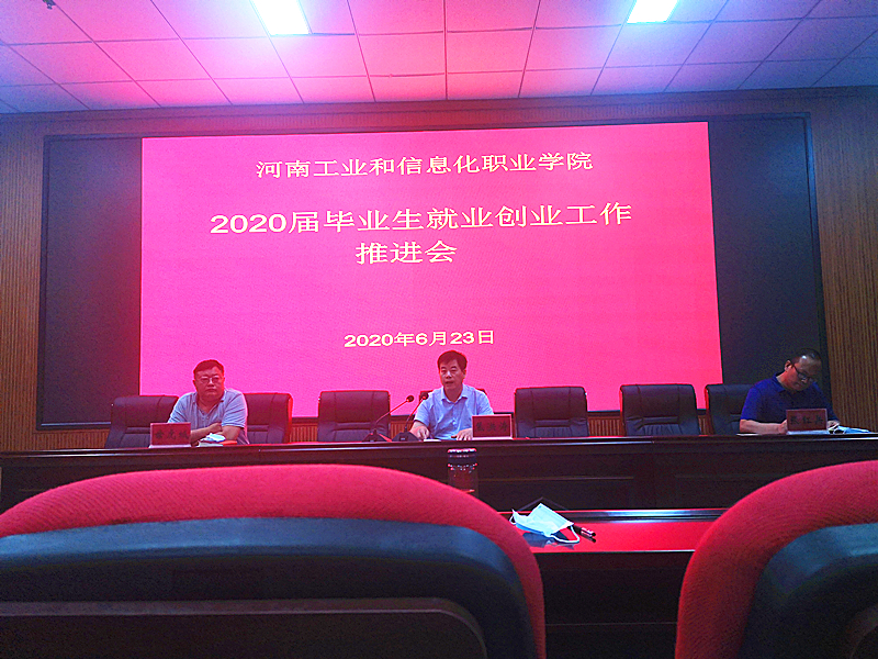 6月23日下午,我院在第四会议室召开2020届毕业生就业创业工作推进会。院领导焦洪涛、毋虎城、张红兵出席会议,招生就业处全体人员,各系(部)主任、党总支书记、就业信息员参加了会议。