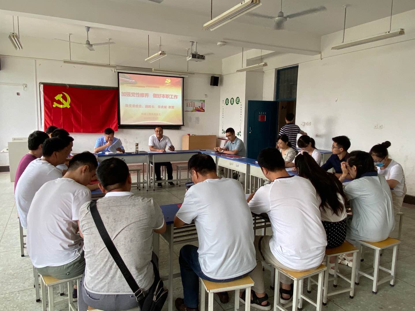课前,毋院长同机械工程系全体党员一起重温入党誓词,向党的99岁生日献礼