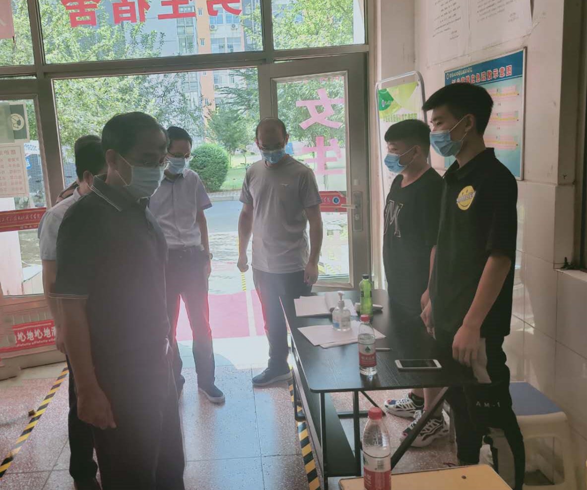 学院领导实地检查了学院大门口、学生报到入口、学生宿舍等重点部位,听取了相关部门负责人关于疫情防控和返校复学工作开展情况的汇报,对一线工作人员表示由衷的感谢和亲切的慰问,并叮嘱大家要在做好个人防护工作的同时,尽职尽责,圆满做好开学报到工作,为学生创造良好的返校环境。