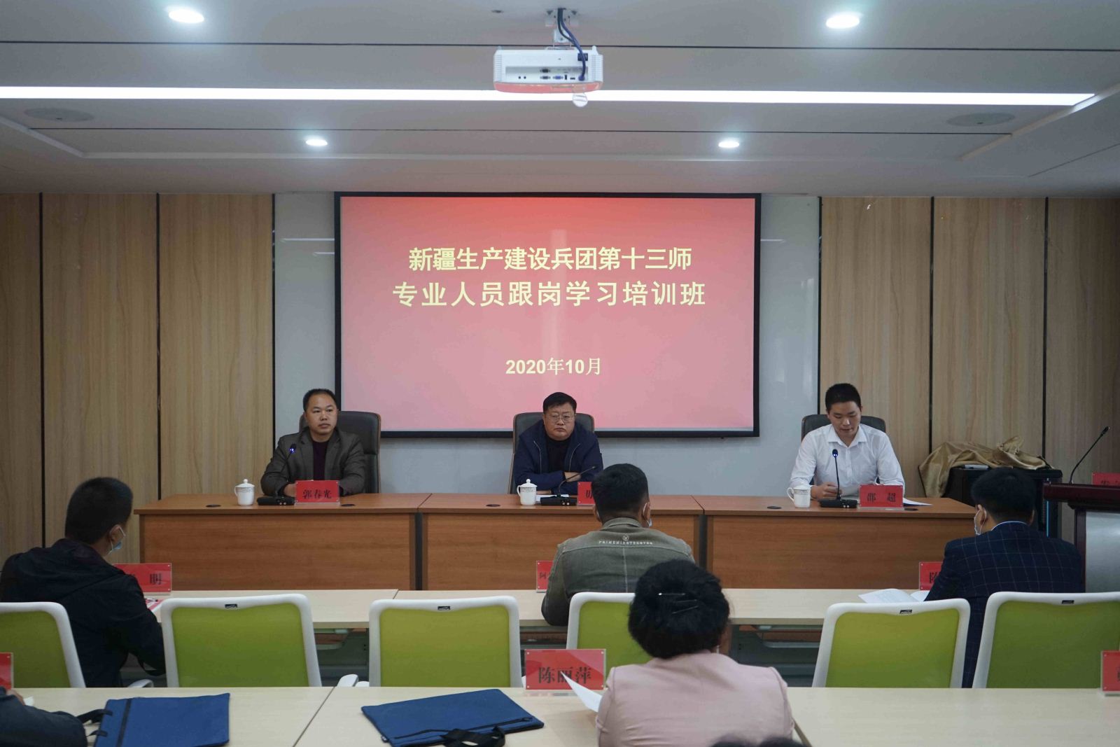2020年10月19日上午,新疆生产建设兵团第十三师专业人员跟岗学习培训班开班仪式在焦作市地理信息产业园隆重举行。开班仪式由院培训处处长郭春光主持,副院长毋虎城、兵团第十三师工信局邵超出席并发言。
