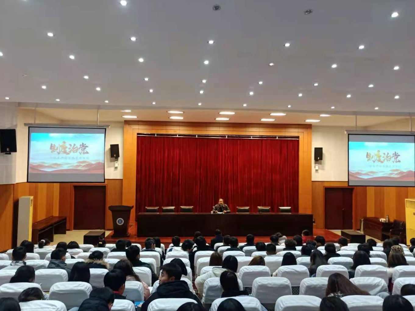 张树岭以制度治党为主题,从“如何保持党的先进性和纯洁性”谈起,结合党的“八项规定”,通过一系列案例向师生列举了以习近平同志为核心的党中央坚持党要管党,全面从严治党,扎牢制度笼子,强化制度执行取得的显著成效。围绕制度治党事关长远,标本兼治建章立制,与时俱进完善发展等三个方面详细阐述了制度治党是从严治党的治本之举,是习近平新时代中国特色社会主义思想的重要组成部分,是我党政治优势、组织优势和执政优势的集中体现。最后对大家提出了三点要求:一是遵章办事,二是心中明德,三是知止知耻。