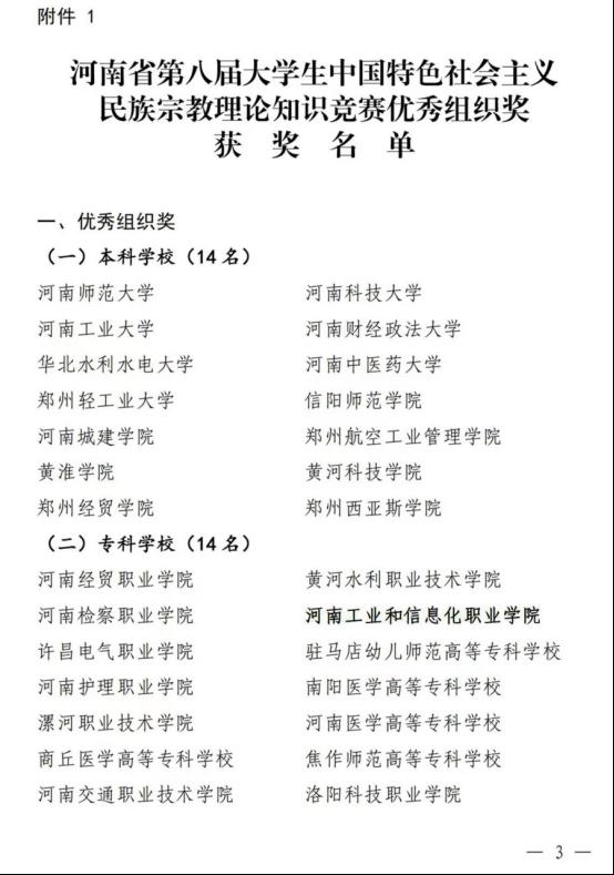 2021年1月4日,中共河南省委高校工委、河南省教育厅、河南省民族宗教事务委员会授予我院河南省第八届大学生中国特色社会主义民族宗教理论知识竞赛活动优秀组织奖荣誉称号。