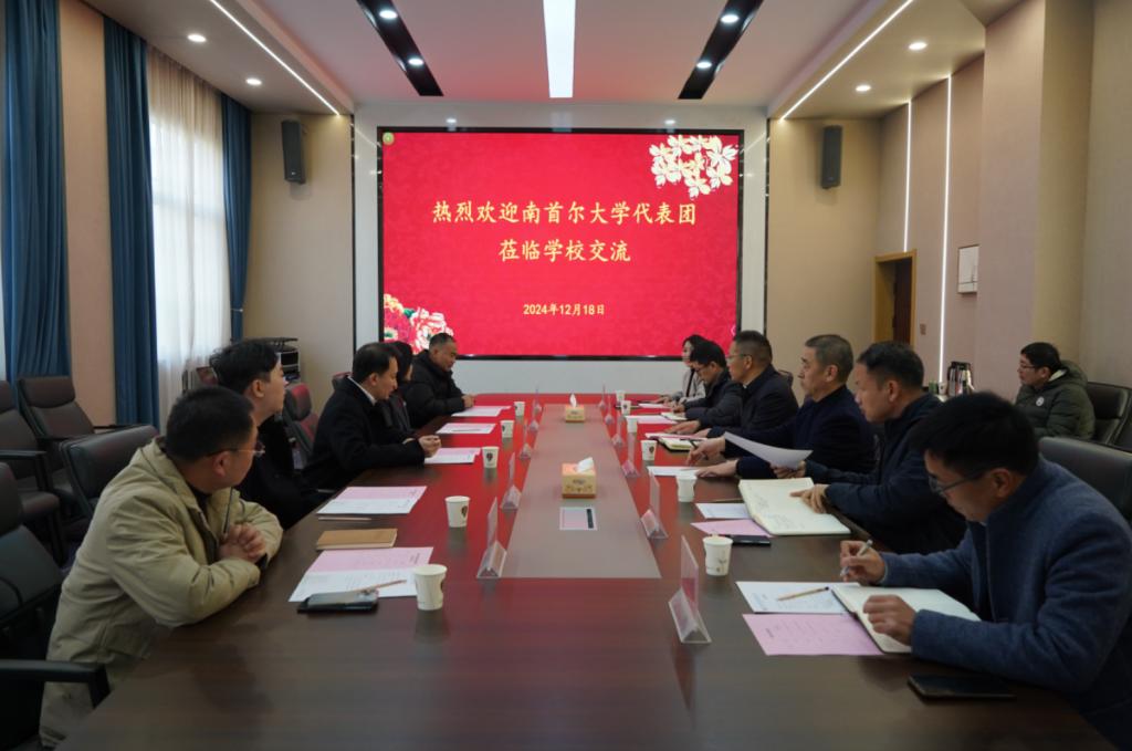 12月18日,韩国南首尔大学国际留学中心长孙增军教授、研究生院长都美香教授、南首尔大学教务处长金尚鹤教授代表团一行五人来我校访问交流。院长史先进及组织人事部、教务处、招生就业处、土木工程学院、对外合作与国际交流处相关负责人参加会谈。