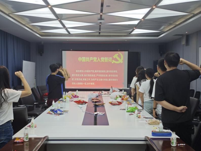 毕业生座谈环节,25届毕业生分享了自己在读研期间生活、学习、科研和就业等相关经验,他们的话语中流露出对党组织深深的感激之情,以及面对未来挑战时的坚定信心和决心。这不仅让每位在座的党员深受启发,为同志们提供了参考与今后努力的方向,也进一步增强了大家对共同理想的追求和信仰。随后,在特别环节中,组织了一系列趣味活动,如猜字谜、猜歌名和飞花令等,激发了大家的思维和参与热情。同志们积极思考,踊跃回答,现场氛围洋溢着欢笑与活力。紧接着,党员同志重温入党誓词,告诫所有人不忘初心、砥砺前行,在今后的学习、工作中要永远跟党走,发挥党员的先锋模范作用。