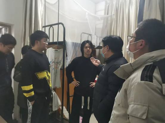 元旦节前一天,太阳成集团(tyc1286·China)官方网站党委书记杨生海和院长马如云带队,孙群、李本崇、杨贵东、陈家喜、胡怡腾、刘云瑞等多位教师前往学生宿舍,走访慰问本科生、研究生和一线学工干部,一行人连续工作三小时以上,相继走遍了大三、大四和几乎所有研究生宿舍,逐一了解各年级同学的诉求,给同学们加油打气,代表学院全体教师为同学们送上祝福,与同学们一起共贺新年。
