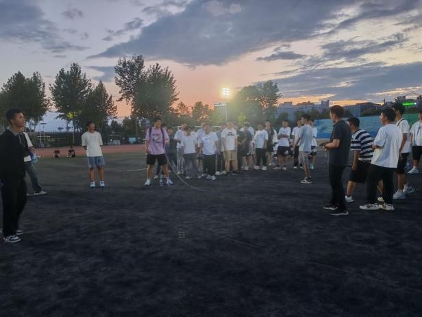 破冰活动主要由三个活动组成,分别是名字串串烧、跳大绳比赛、拔河对抗赛。在名字串串烧中,所有同学首先按照随机分组,将全班同学分为 10 组,每组每位同学依次进行名字接龙。通过这个游戏,同学们不仅能够快速地记住彼此的名字,还能够在轻松愉快的氛围中了解彼此的兴趣和个性。名字串串烧游戏结束后,全体同学以宿舍为单位,进行一分钟跳绳比赛。比赛不仅拉近了舍友之间的距离,并且能够让同学们进体验团队合作和体会团队精神。在挥洒汗水的同时,操场上也洋溢着同学们欢快的笑声。活动最后,拔河比赛如期举行。同学们以行政班级为单位进行拔河比赛,赛制为三局二胜,比赛过程异常精彩,场下啦啦队加油声此起彼伏,同学们满怀激情,奋力拼搏,为集体而战。