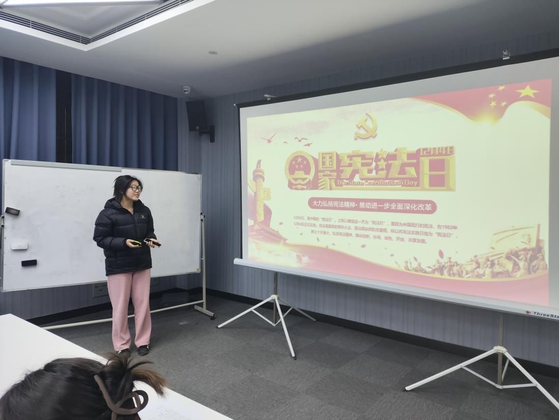 首先,全体党员通过集体学习的形式,深入学习了宪法的基本内容和精神内涵。赵婧同志作为本次学习的主讲人,结合新时代中国特色社会主义事业的发展要求,深入解读了宪法作为国家根本法的重要作用,并强调了宪法在推动国家改革、促进社会和谐发展中的核心地位。