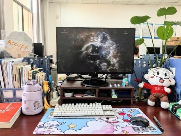 如果将宿舍视作研究生的第一个家,那么工位便是他们的第二个家。方寸之间,堆叠的文献见证着学术探索的深度,整齐的文具勾勒出科研攻坚的轨迹,精心布置的绿植与装饰更赋予空间独特的温度。23级硕士研究生任晓婉说,“每一寸空间都承载着对学术的热爱,这里的每一份陈设都是青春的注脚”。22级博士研究生黄安讲到,“看着亲手布置的绿植在阳光下舒展,一天的疲惫都化作前行的动力。”每个工位都成为主人个性与追求的延伸,书写着属于自己的奋斗诗篇。