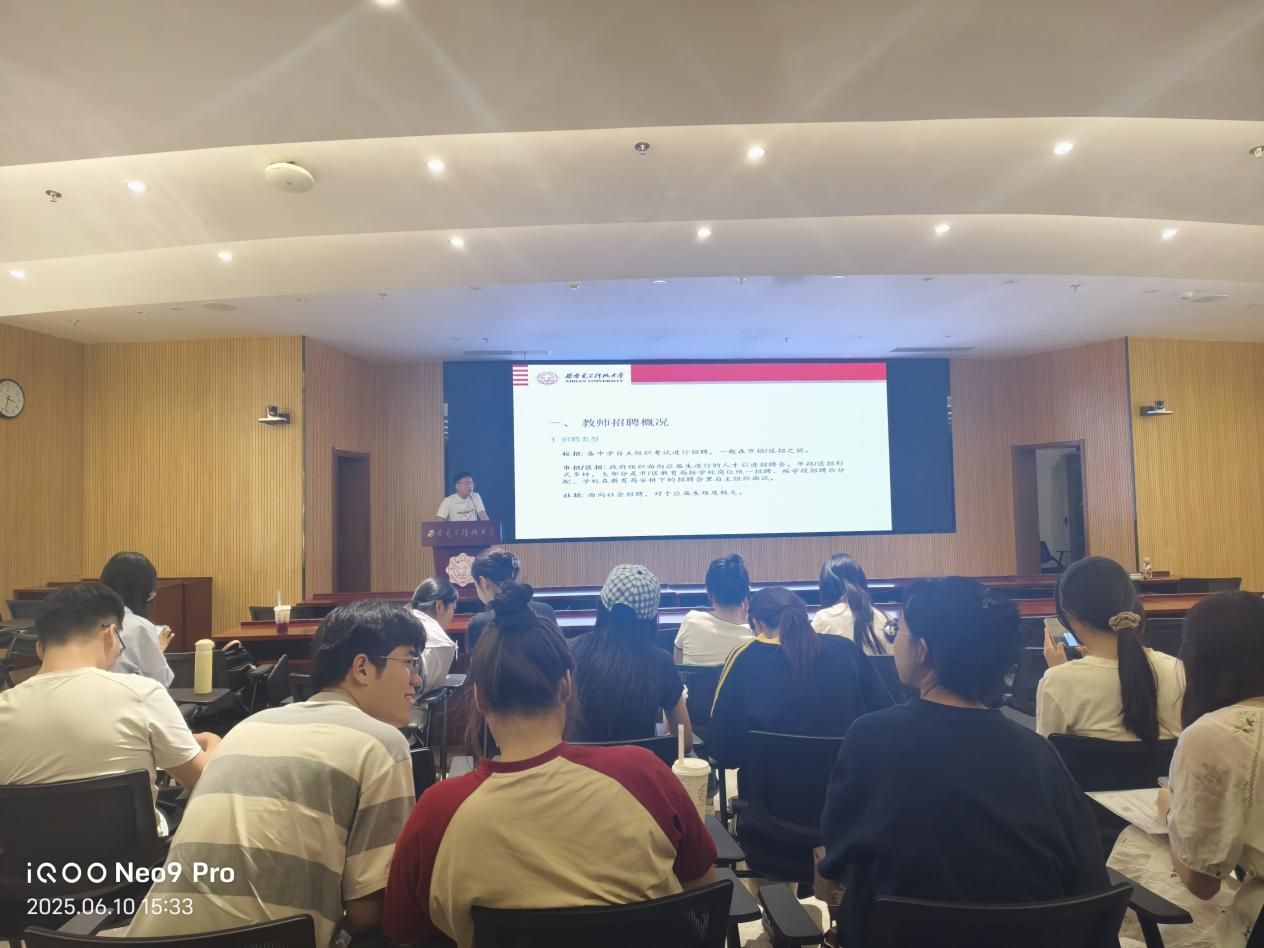 目前已签约西安市铁一中的安达则围绕教师招聘展开分享。他介绍校招、市招、区招三种途径,分析不同招聘类型对学历、师范背景、教师资格证的要求,提醒关注有关部门院校招聘政策。教师招聘流程包括投递、审查、笔试、面试、体检等,笔试难度大,需结合高中教材与历年试题准备。面试含试讲与结构化问答,要练习板书、课堂语言与应变能力。他建议重视招聘信息收集,积极参与校招,通过实习积累教学经验,提升竞争力,勇敢迎接挑战。