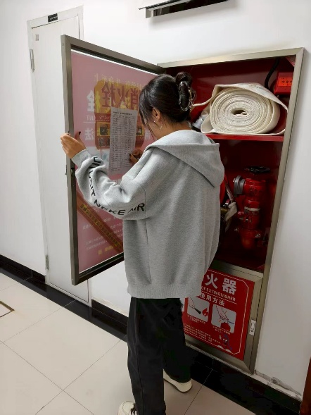 消防安全检查岗位的同学化身为“校园安全守护者”,分组走访每层宿舍楼,仔细检查灭火器有效期、消防通道畅通情况、用电设备安全等,认真做好记录并及时上报安全隐患,在实践中提升了安全防范意识与应急处理能力。