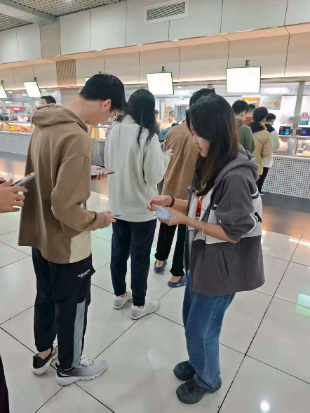 在美好食光引导员岗位上,同学们热情引导就餐人员有序排队、倡导节约粮食,及时收集并反馈同学们对食堂的建议,协助维护就餐秩序与周边环境整洁。在就餐高峰期,同学们耐心疏导人流,细心整理餐椅,用微笑和行动传递着文明就餐的理念。