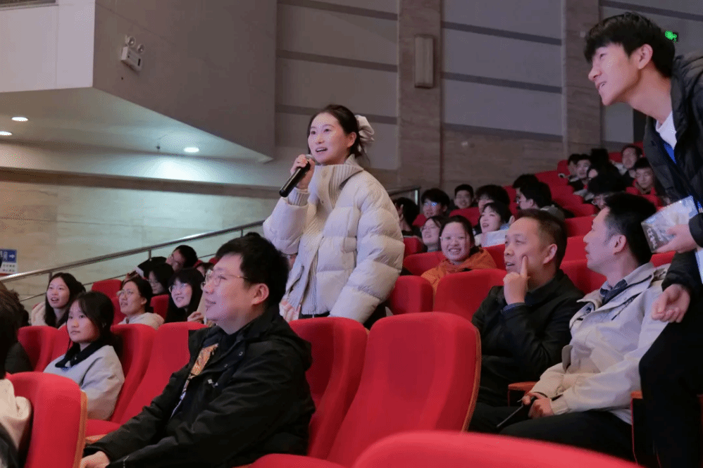 高潮段落中,《街舞 problem》的舞者以利落张扬的舞姿,精准踩中青春热血鼓点,将现场氛围推向高潮;奇妙的《魔术》表演手法精湛,反转不断的情节引爆全场好奇与欢呼,让观众沉浸在奇幻的视觉体验中,感受艺术带来的惊喜与热烈;《童年歌曲》的经典前奏响起,瞬间唤醒全场共同回忆,全院师生同唱,共享欢乐时光;“emoji 猜猜”互动环节中,师生默契破解趣味谜题,进一步拉近心灵距离;最终,晚会在大合唱《像你这样的朋友》中落下帷幕,全员和声唱响青春情谊,定格下这场难忘的校园盛宴。