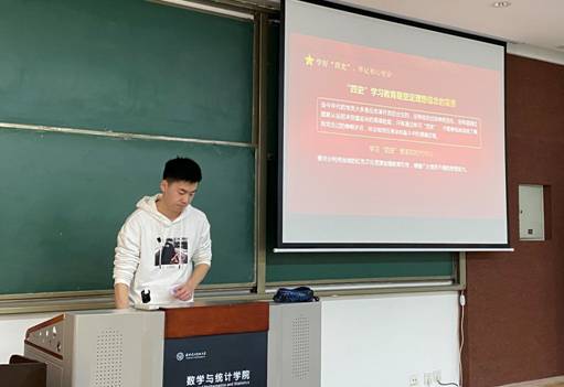 会议第二项内容是 “四史”知识抢答竞赛。支部发展对象按照组合要求分为六组,进行举手抢答,大家通力合作,展现风采。每当主持人读题目话音刚落,同学们争先恐后,积极举手,踊跃回答,并将答案脱口而出,在问与答的过程中不断加深大家对“四史”内容的记忆与理解,从同学们参与答题的热情以及现场的答题情况可以看出同学们的“四史”知识储备非常丰富,大家优异的表现带动了现场学习“四史”知识的浓厚氛围。经过激烈的角逐,最终脱颖而出了本次抢答比赛的三位优秀答题手:胡旭龙、林子程、张巧琪。这次竞赛不仅仅是“四史”学习教育成果的一次集中检验,更是进一步鼓励和调动党员同学不断增强学习教育实效,将“四史”知识内化于心。历史无不沉淀为精神,精神又无不是历史的,作为青年党员,更应该坚定理想信念,坚守共产党人精神追求。“四史”学习教育,不能为了学习而学习、为完成任务而学习,而要在坚持正确历史观的基础上有独特的思维方式和敢于担当的决心。