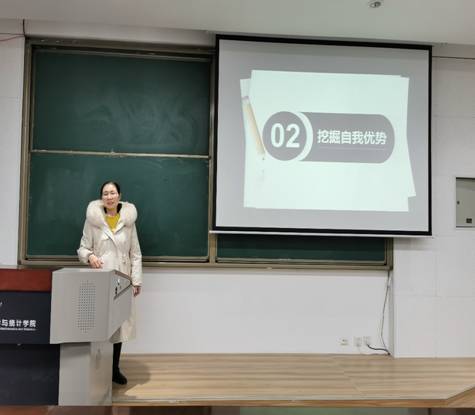 詹老师用风趣生动的语言从就业形势分析、挖掘自我优势、抓住有利机会、慎重选择职业、树立职业品牌五个方面向大家介绍了目前的就业情况以及当前就业形势和政策,一开始,詹老师从互联网企业、独角兽企业、金融服务业、先进制造业、战略性新兴产业为代表的“新产业、新业态、新技术、新模式”就业市场中的就业潜力、学校在行业中的影响力和学校人才培养质量、我校毕业生在用人单位的良好口碑三个方面娓娓道来,为想就业还未就业的同学们打了一剂强心剂,再从就业市场规模缩水、毕业生求职不积极,毕业生求职观念转变、需求提前释放等就业市场需求的不可预期性,也给就业学生提出要求,不能盲目等待。