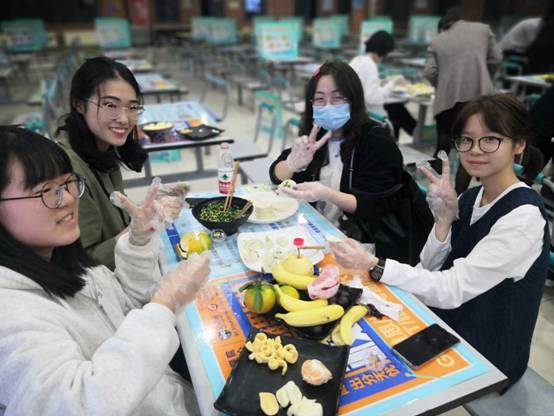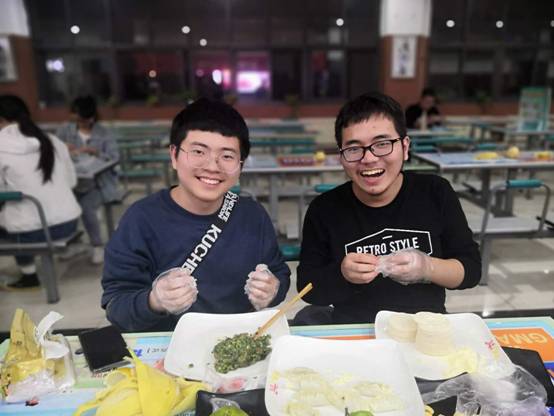 联欢会上,节目精彩纷呈。首先,开场播放了由数统院本科生党支部拍摄的原创诗朗诵视频——《祖国,我亲爱的祖国》,饱满而不失深情,点燃了在场每一位观众的爱国之情。随后,党委副书记王佩代表到场的老师和领导向同学们送上节日祝福,并亲切地表示希望所有同学们能够玩的开心。紧接着是才艺表演环节,由谢蓉,李能卓,顾文凯,于文晴带来的诗朗诵《中秋的月亮》,配上古筝的空灵之音,仿佛将古时的盛世中秋拉到我们近前,令人回味。朗诵过后,常晓阳同学为我们带来了口琴表演《secret base》,琴声似清风萦绕会场,表演收获了阵阵掌声。在才艺表演环节的最后,赵奕宁同学演唱歌曲《不用去猜》,富有节奏感的rap成功活跃了晚会的气氛。才艺表演结束,便到了万分期待的游戏环节,场下同学踊跃参与,参与者的表现引发台下观众频频爆笑与喝彩。在晚会最后,重头戏——包饺子来了。同学们三五成群,围坐一桌,设计着他们喜爱的饺子形状,老师们也纷纷离开座位,去行间进行指导,与同学们共同包裹团圆与喜悦。同学们的欢声笑语伴随着饺子馅被包进面皮之中,也在这个特殊的日子体会到了家的温暖。最终,太阳成集团(tyc1286·China)官方网站双节联欢会在全体大合影后圆满结束。