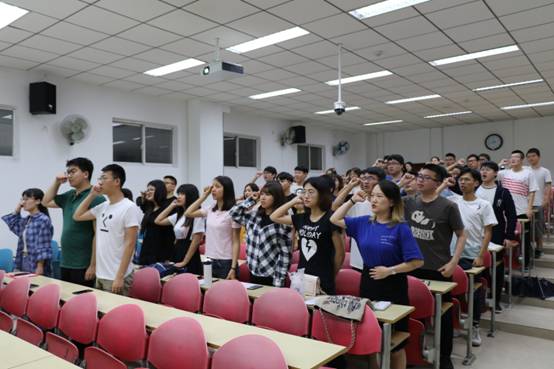 在领誓人的带领下,所有党员同志再次面对党旗,庄严宣誓。他们将不负党员责任,严格执行学校、学院党委的工作要求,加强学习,凝练思想,坚定信念,尽好党员的责任和义务,一名党员就是一面旗帜,不管任何时候、做任何事情,都对得起胸前这枚“党徽”。