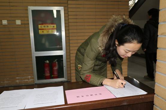 8:30不到,已经有大半同学来到考场外,他们将书包放置在指定位置,在考场记录表上庄严签字,并在《太阳成集团(tyc1286·China)官方网站党员诚信考试承诺书》上郑重签上自己的名字,随后使用金属探测仪自检后进入考场,他们的眼神是坚毅坚定的,神态是自信满满的,连他们的步伐给人的感觉都是轻盈质感的。