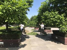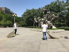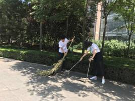 本次实践活动是清扫学院卫生责任区,同学们纷纷穿上了数统院文化衫,文化衫是学院为了同学们统一实践活动特意定做,阳光下胸前彩虹色的学院图标飞扬飘洒。同学们分工明确各司其职,在尘土飞扬中,感受着劳动的快乐。