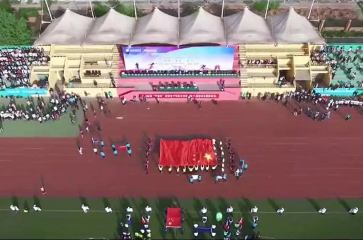 运动会举行前夕我院积极组织老师、大一学生练习方阵表演。开幕式上我院飘扬的红旗、响亮的口号体现了我们对党、对国家及体育事业的热爱。此外我院学生还及参加了大型团体操表演和花环操的表演。文娱表演结束后,校长郑晓静院士宣布运动会正式开幕。