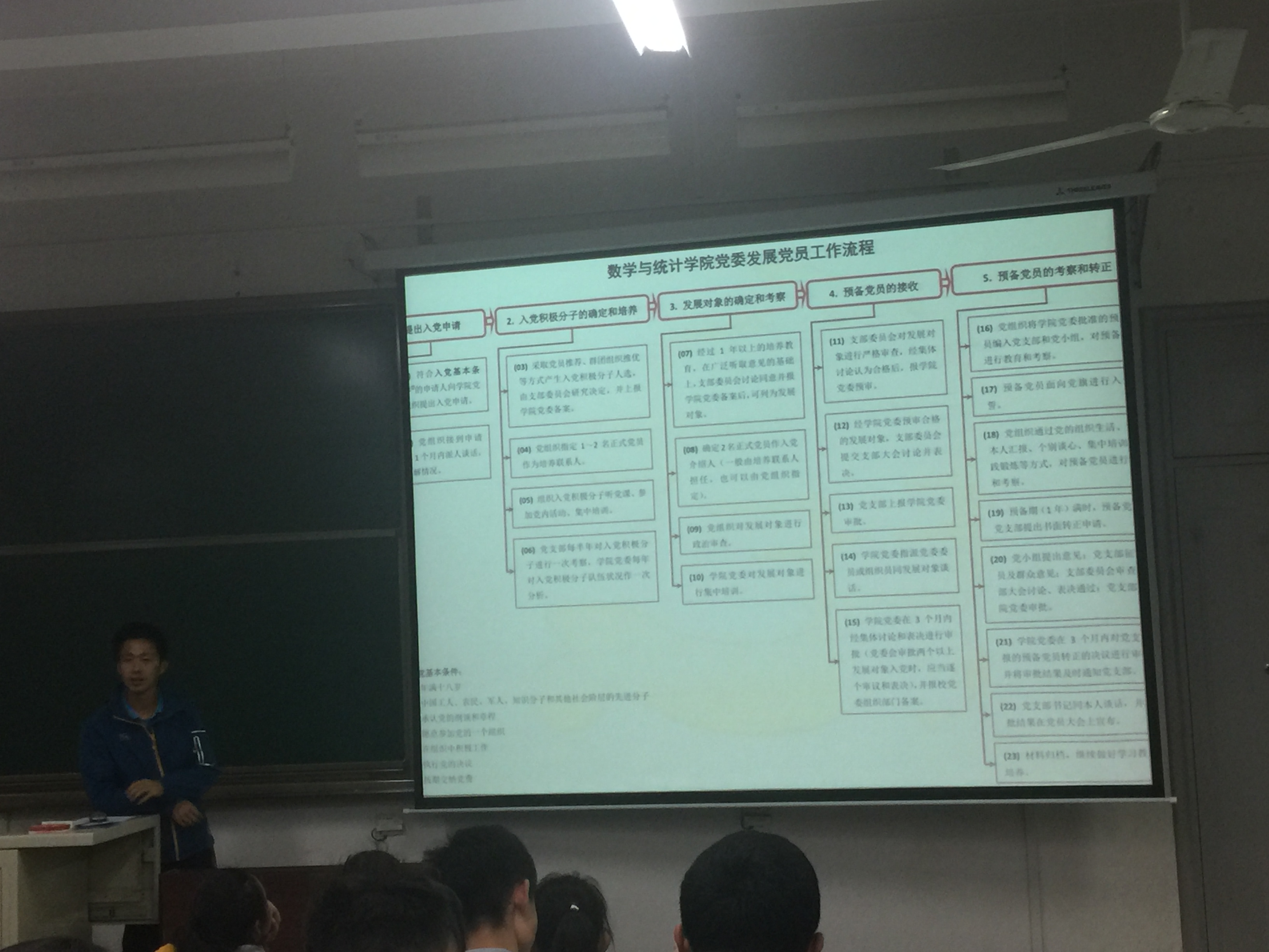 最后,老师再次强调了入党的庄严性并要求每个有意愿入党的同学都应该在各个方面努力提高自身素质,为将来入党成为合格的共产党员作好充分的准备。