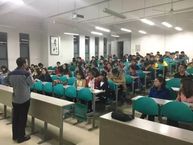 3月26日班主任李本崇老师莅临我院大二学生点名现场并为全体同学做学习报告。