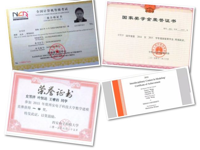 2016年01月:参加美国大学生数学建模竞赛,荣获国际一等奖;