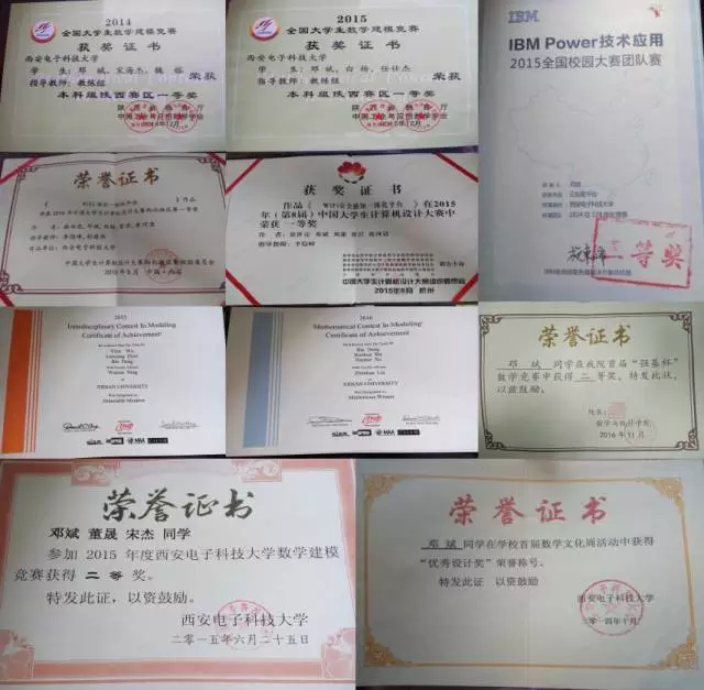 2015年3月,获得国际数学建模竞赛二等奖,排名第三