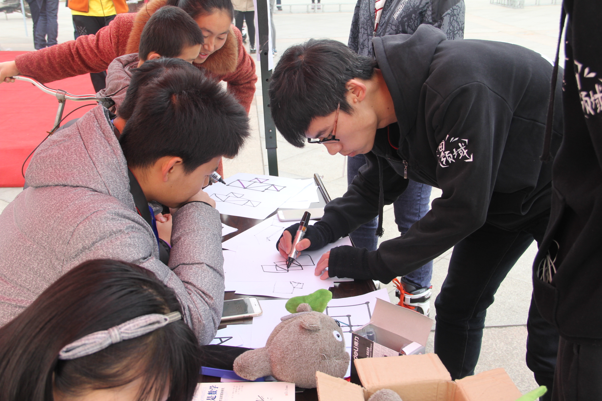 本次展览主要通过展板形式,配合现场讲解,介绍古今中外著名数学家的名人轶事和成就、著名数学定理的由来和内涵、工程领域数学的重要性和应用、数学与其他学科的联系等知识。同时还举行了内容丰富的数学类益智游戏和比赛,如九连环、华容道、魔方大赛、数学灯谜以及数学知识竞答等。游戏比赛区域人头攒动,获胜者还能得到我院同学自制的数学书签及数学书籍等精美纪念品,同学们展现出了极大的参与热情。