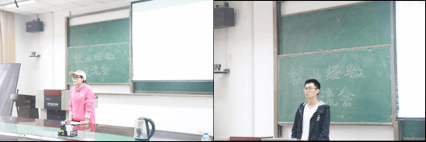交流会开始,首先分享经验的是女生签约薪酬最高的薛小娜同学,她通过自己的经历告诉同学们找工作首先应该自身定位,并结合自身特点多方面查找信息,鼓励大家多参加竞赛,学习算法熟练编程,强调在求职期间坚持不懈,善于总结才是硬道理。接着签约华为的马久龙同学从简历制作到面试、笔试详细介绍了自己的求职过程,提醒大家要多注意面试技巧和专业知识表达能力。