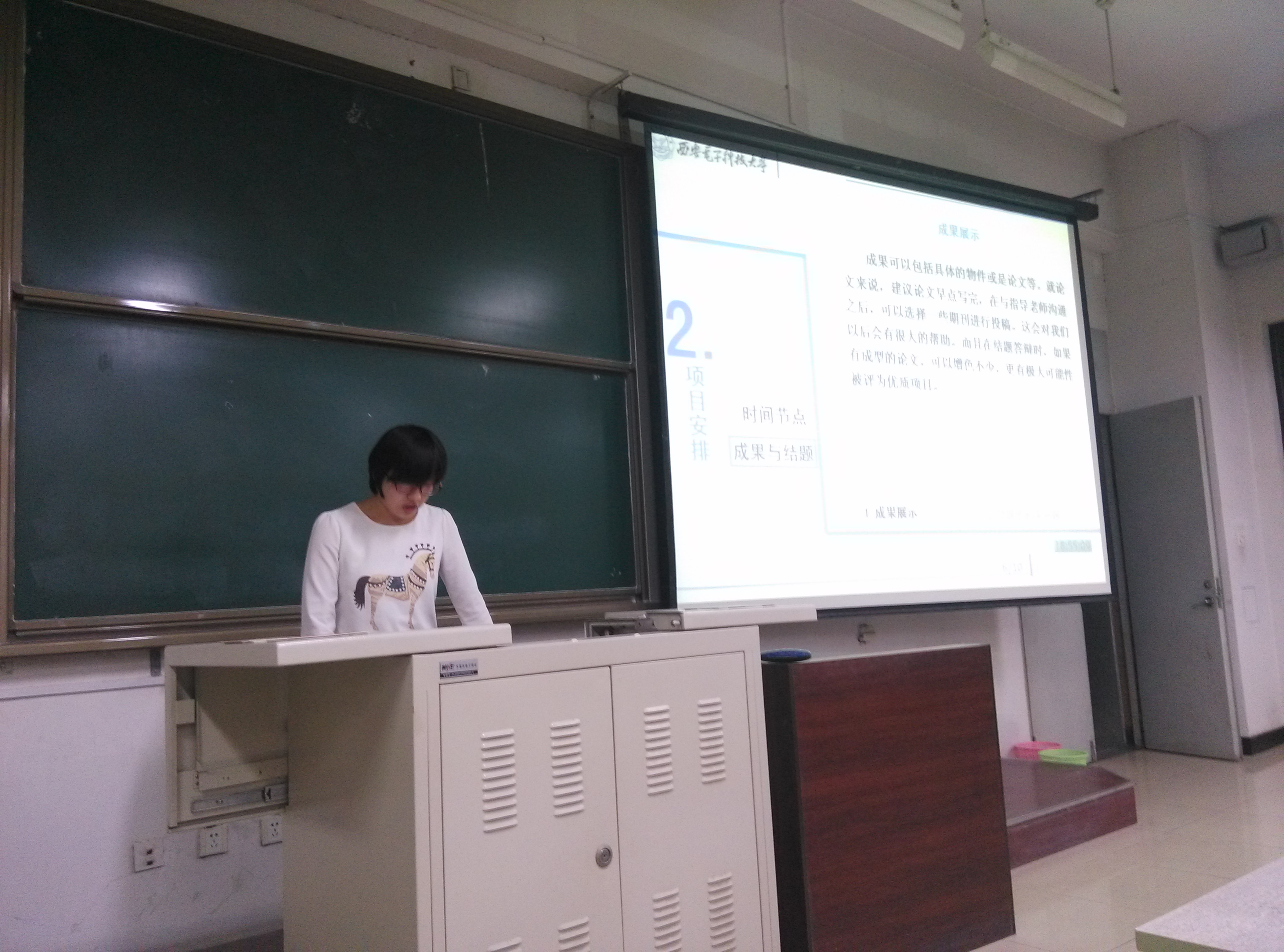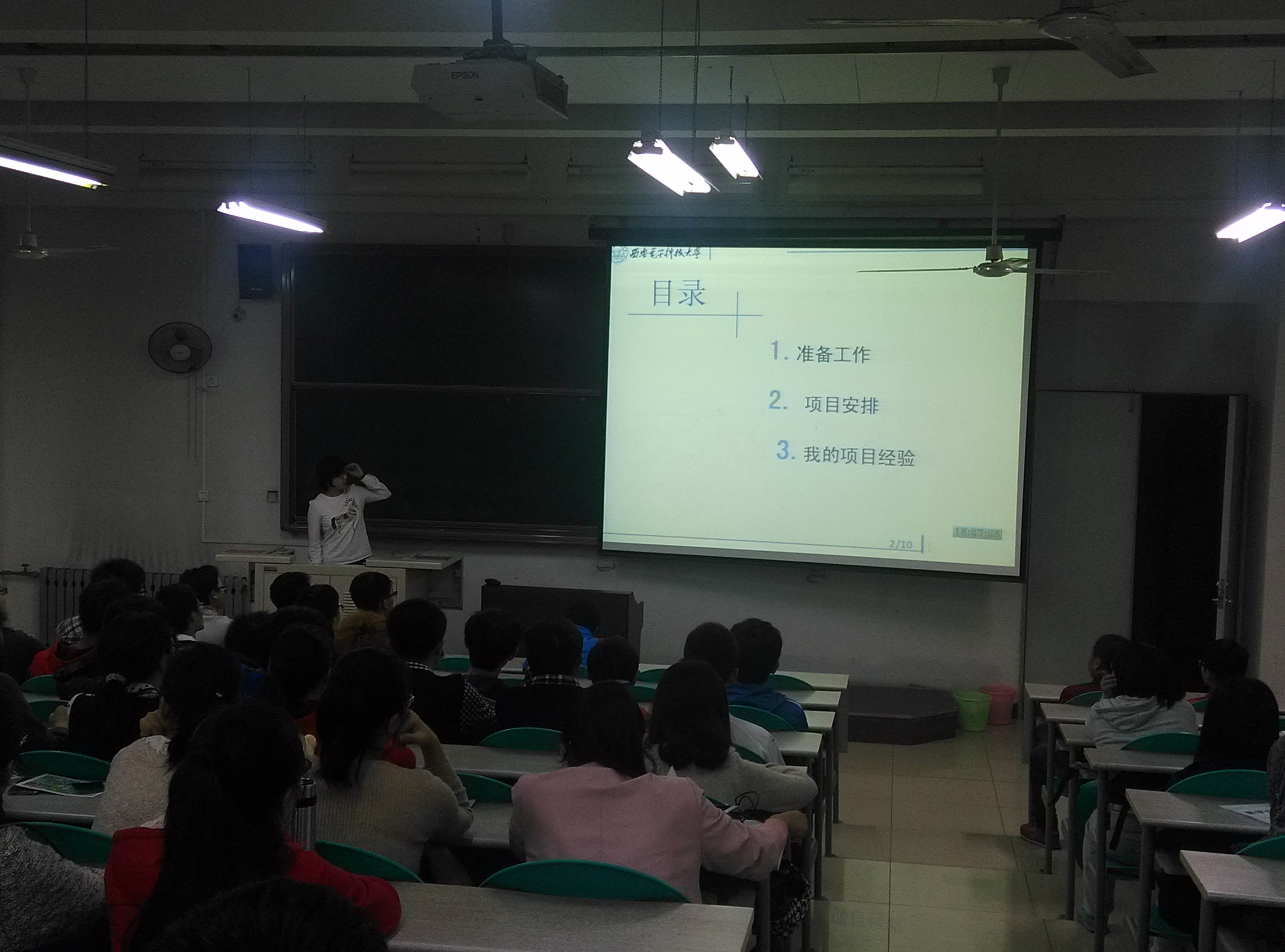 国创是对同学们所学知识和实际运用的考验,并且也是我校十分重视的一项活动。据资料,我校从2007年至今每年都在开展“大学生创新创业训练计划”,累计1900余名学生参与计划,立项411项,也取得了非常好的成绩。本次为同学们宣讲的是12级信息与计算科学专业的吴沂霖学姐,她主要从“国创是什么”、“导师的选择”、“队伍的组建”以及“项目经验”等比较基础的层面向同学们做一些简单说明。大多数同学对国创有极大的兴趣,但在如何参与做项目这样比较大型的活动的问题上感到犹豫,针对这个问题吴沂霖学姐强调,任何事都是一步步走过来的,坚持的信念和恒心尤其重要。