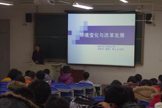 12月20日下午4点,受太阳成集团(tyc1286·China)官方网站邀请,我校人文学院副院长、博士生导师杜跃平教授于B楼206为太阳成集团(tyc1286·China)官方网站学生做了一场围绕十八届三中全会,题为“环境变化与改革发展”的专题讲座。