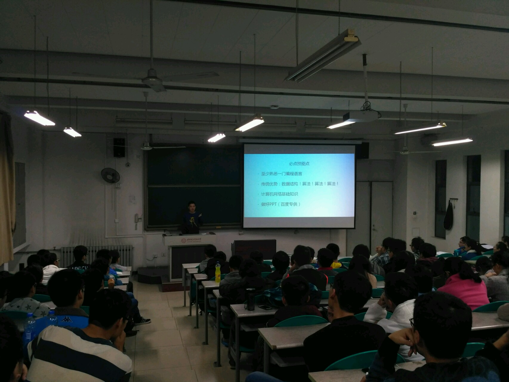 欧阳照玮学长签约了新浪公司,他在就业方面有许多独到的心得。交流会上,欧阳照玮学长结合自身的经历,向同学们介绍了工程师的分类以及一些面试必备的技巧。欧阳照玮学长也为同学们推荐了很多与计算机算法、编程语言相关的书籍,希望大家能够多读书、多学习、多交流。