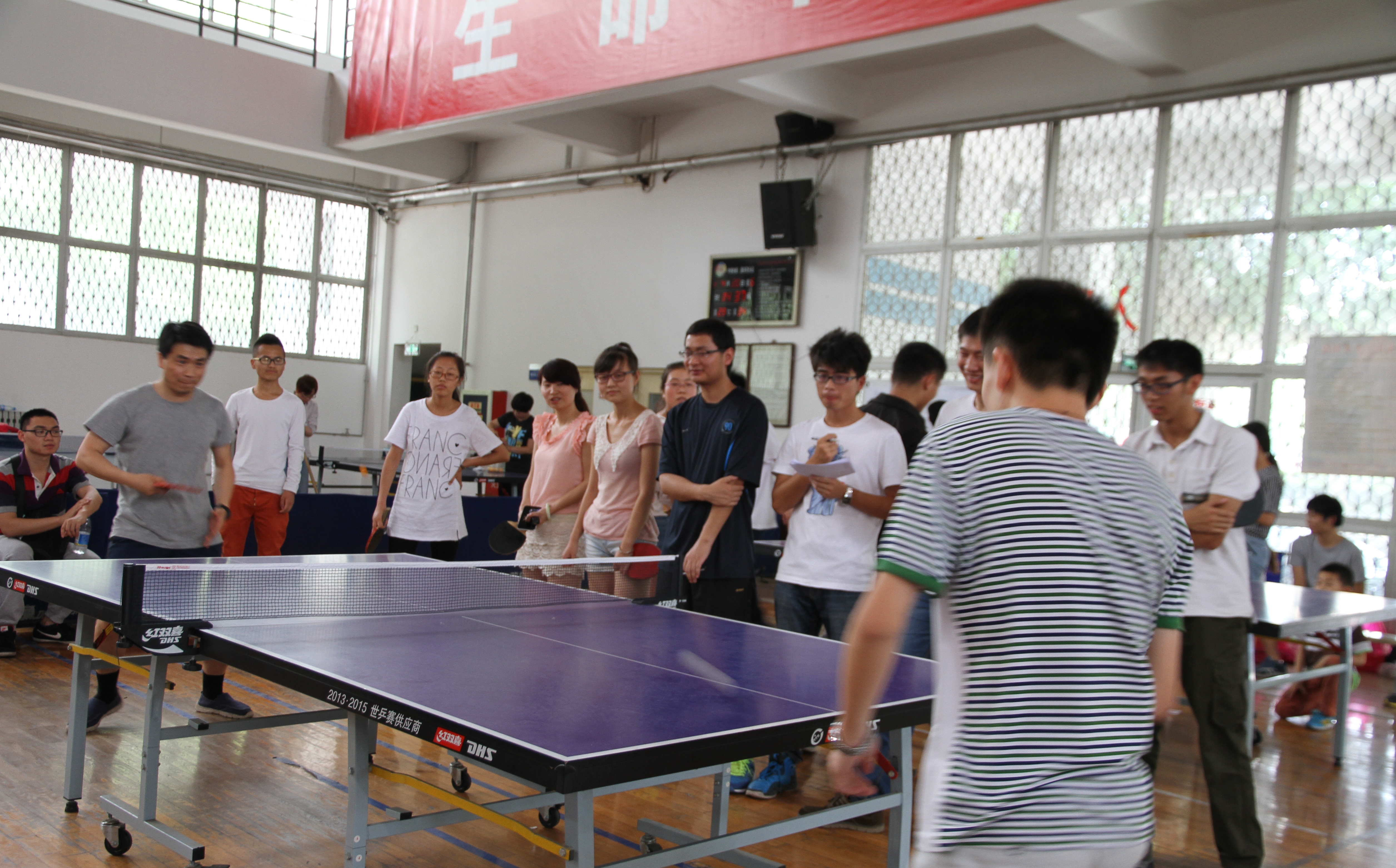 为了丰富我院师生的校园文化生活,促进师生之间的沟通与交流,提高他们的体育锻炼能力,太阳成集团(tyc1286·China)官方网站研究生会于6月5日下午2点在校体育运动中心举办了第二届“桃李春风”杯师生乒乓球交流赛。此次乒乓球交流赛共有教师、研究生、本科生50余人参加,分六个小组进行。比赛分为学生队员选拔赛和师生交流赛,先由各班独立进行班内选拔赛,每班选出4名选手参加6月5日的师生交流赛。