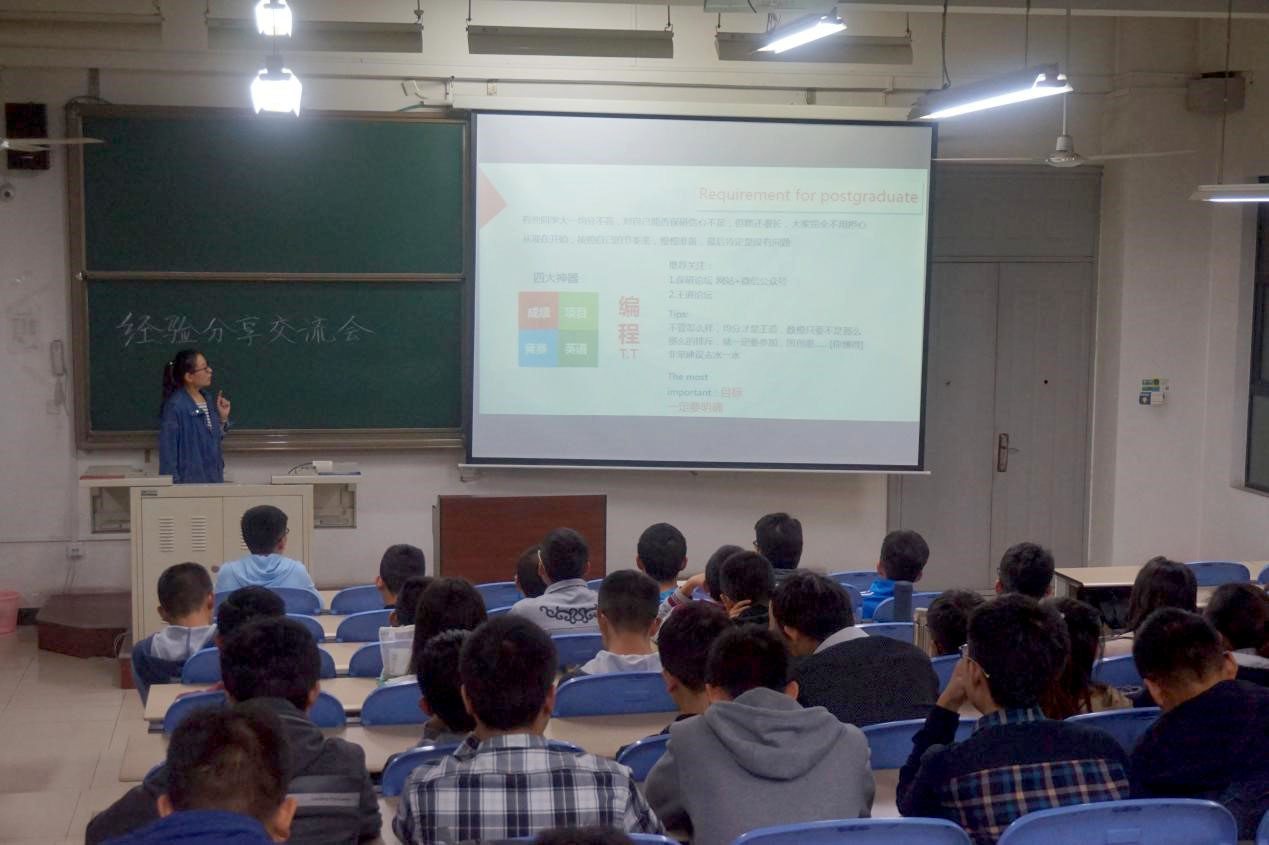 交流会上,我院本科生党支部4名优秀党员:曲珊(保送至上海交通大学)、李悦(保送至北京航空航天大学)、赵佳(保送至我校网络与信息安全学院)和邓斌(保送至北京大学)与同学们进行了分享交流,他们分别分享了自己在大学期间的奋斗历程(包思想政治动态、学习经验、学习方法、竞赛保研等)以及自己一些真实的生活,为同学们解答了学习及生活等方面遇到的问题和困惑,也为同学们今后的发展去向提出了很多宝贵的意见和建议。党员同学勉励同学们要把自身的发展融入到祖国建设的洪流中,真正认识自己,挖掘自己,明白自己想做什么,不能虚度光阴,做对社会对国家有用的人才;也开导同学们即使有一些课程没有学好或还不够努力,也千万不能放弃,从现在开始发奋图强也来得及;要学会学习,也是要懂得感恩,学会坚强。