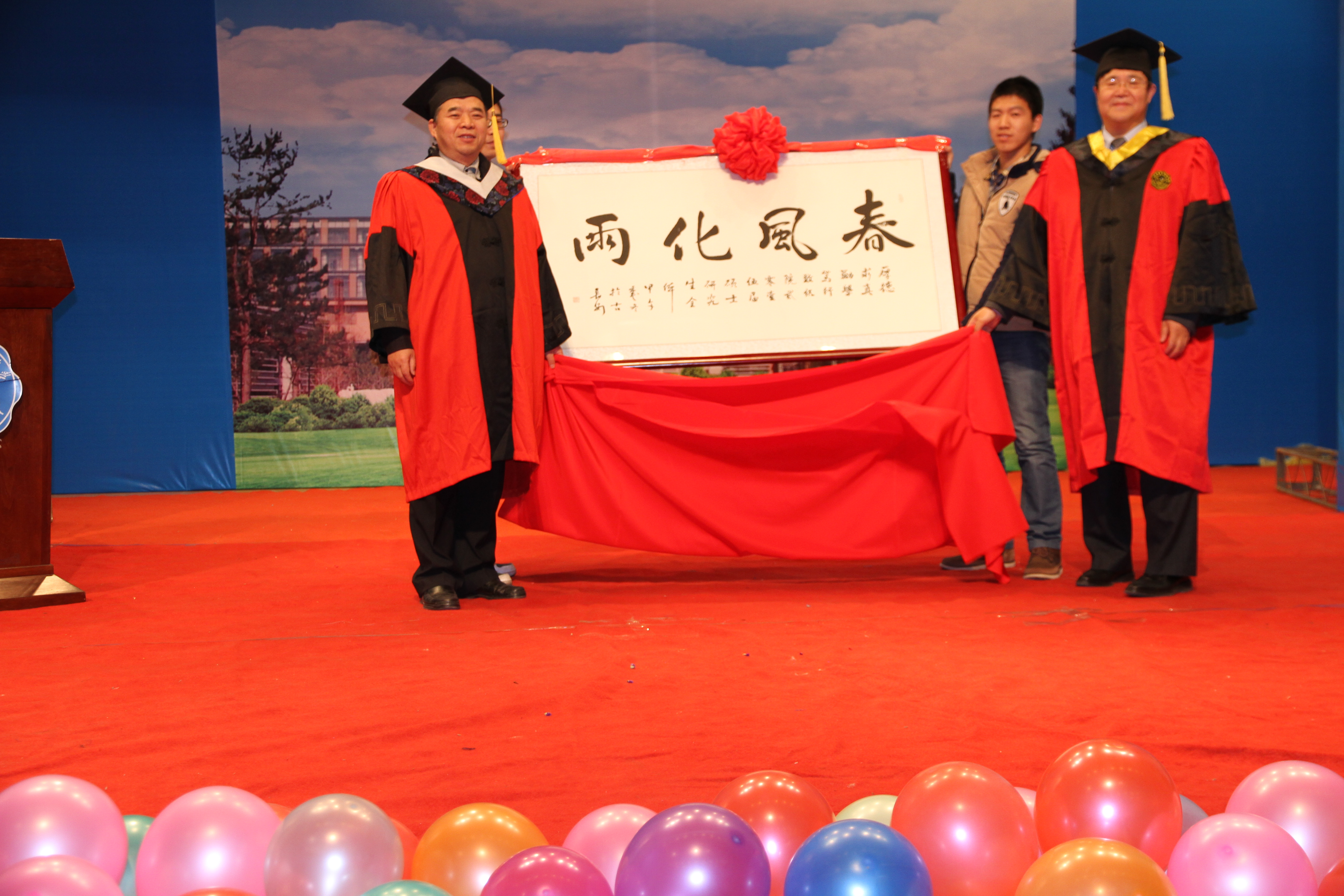 授位仪式最后,毕业生向学院赠予了“春风化雨”的牌匾,感谢学院的熏陶和教育,并祝福学院桃李满天下。