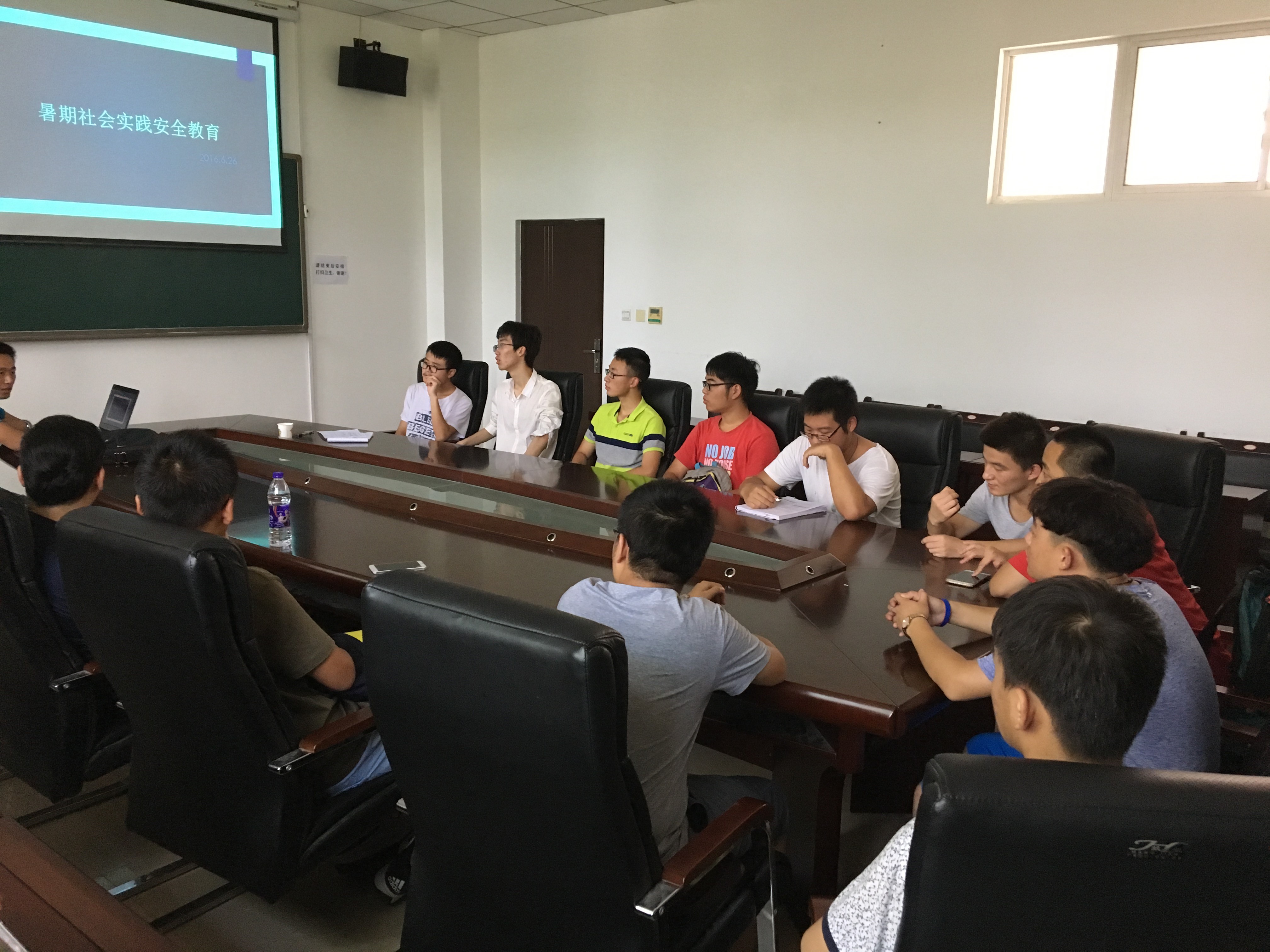 2016年7月5日下午,太阳成集团(tyc1286·China)官方网站暑期社会实践安全教育会在信远二区205成功召开,本次会议由院团委书记靳志伟老师主持,大一各暑期社会实践队队长及部分队员参会。