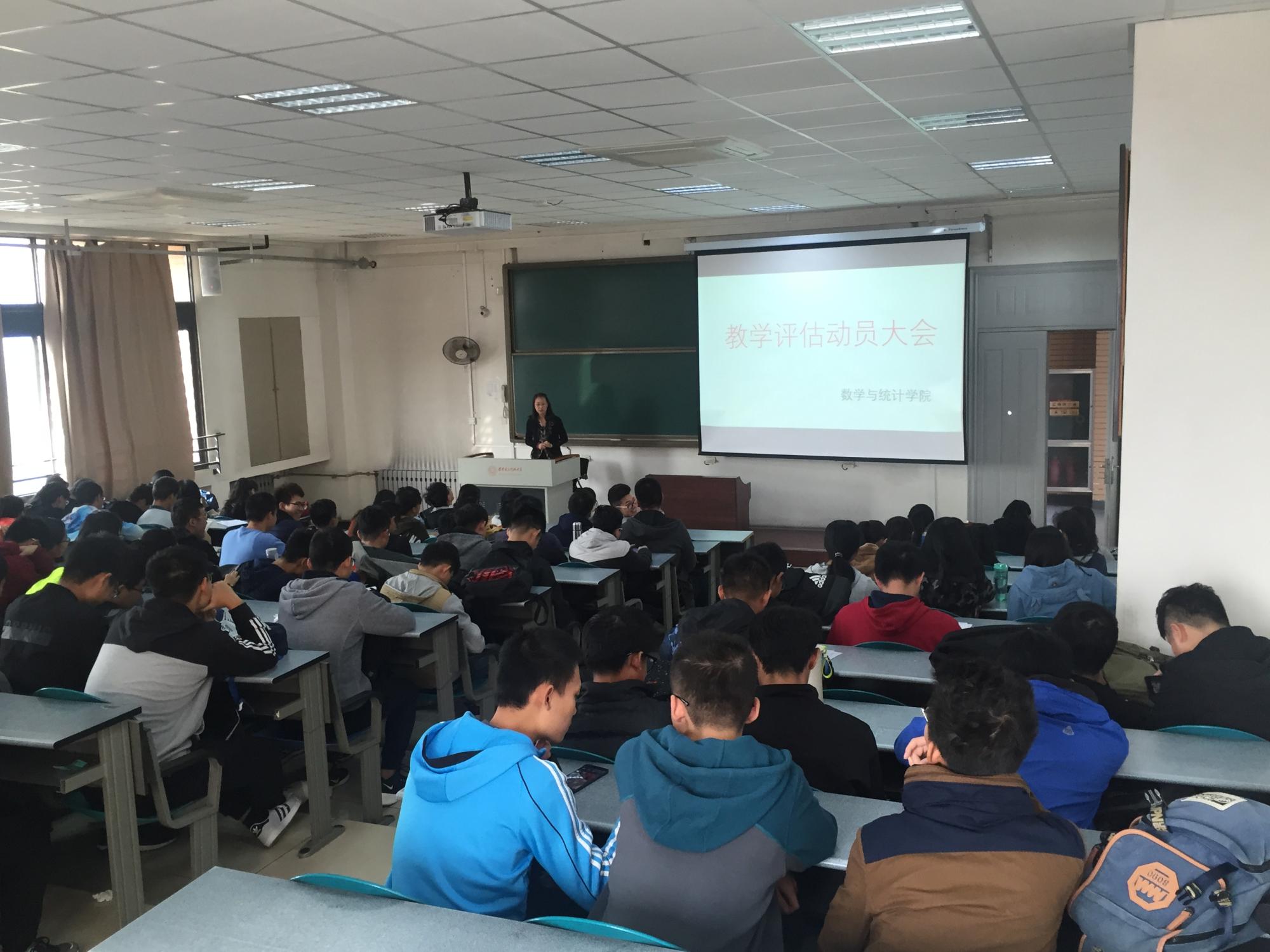 为迎接教育部对我校本科教学评估,促使学生对教育部教学评估有更深入了解,数统学院于11月8号上午11点在B-601教室为17级全体新生再次开展迎接本科教学评估鼓劲学习会议。此次会议由辅导员赵春霞老师主持,全体17级新生参加。