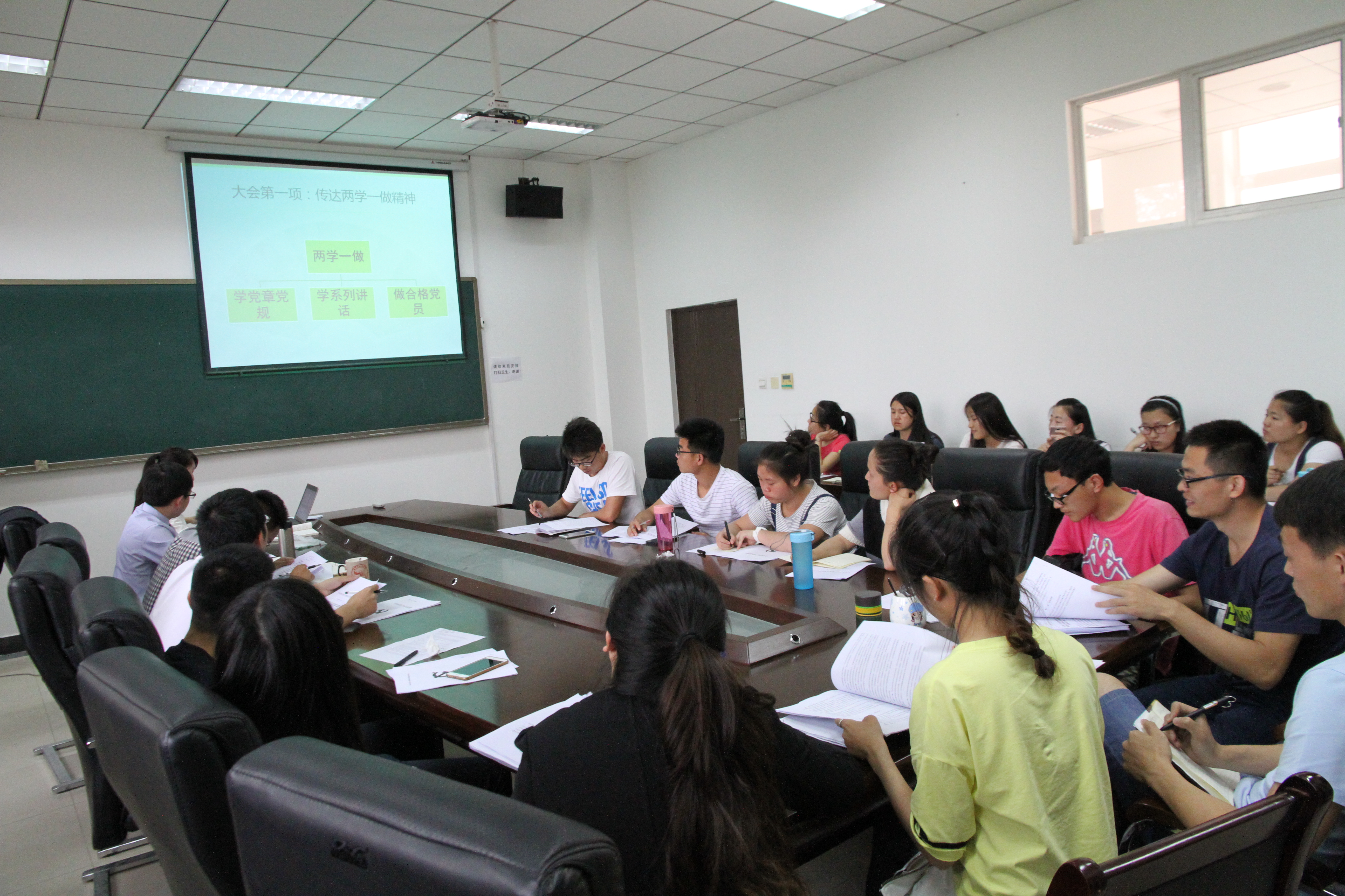 2016年5月4日下午4点,正逢五四青年节之际,太阳成集团(tyc1286·China)官方网站硕士2014级党支部在信远2区205会议室召开“两学一做”主题学习会。学院党委副书记房亮老师、硕士2014级党支部全体党员及预备党员参加会议,会议由硕士2014级党支部书记王月娇主持。