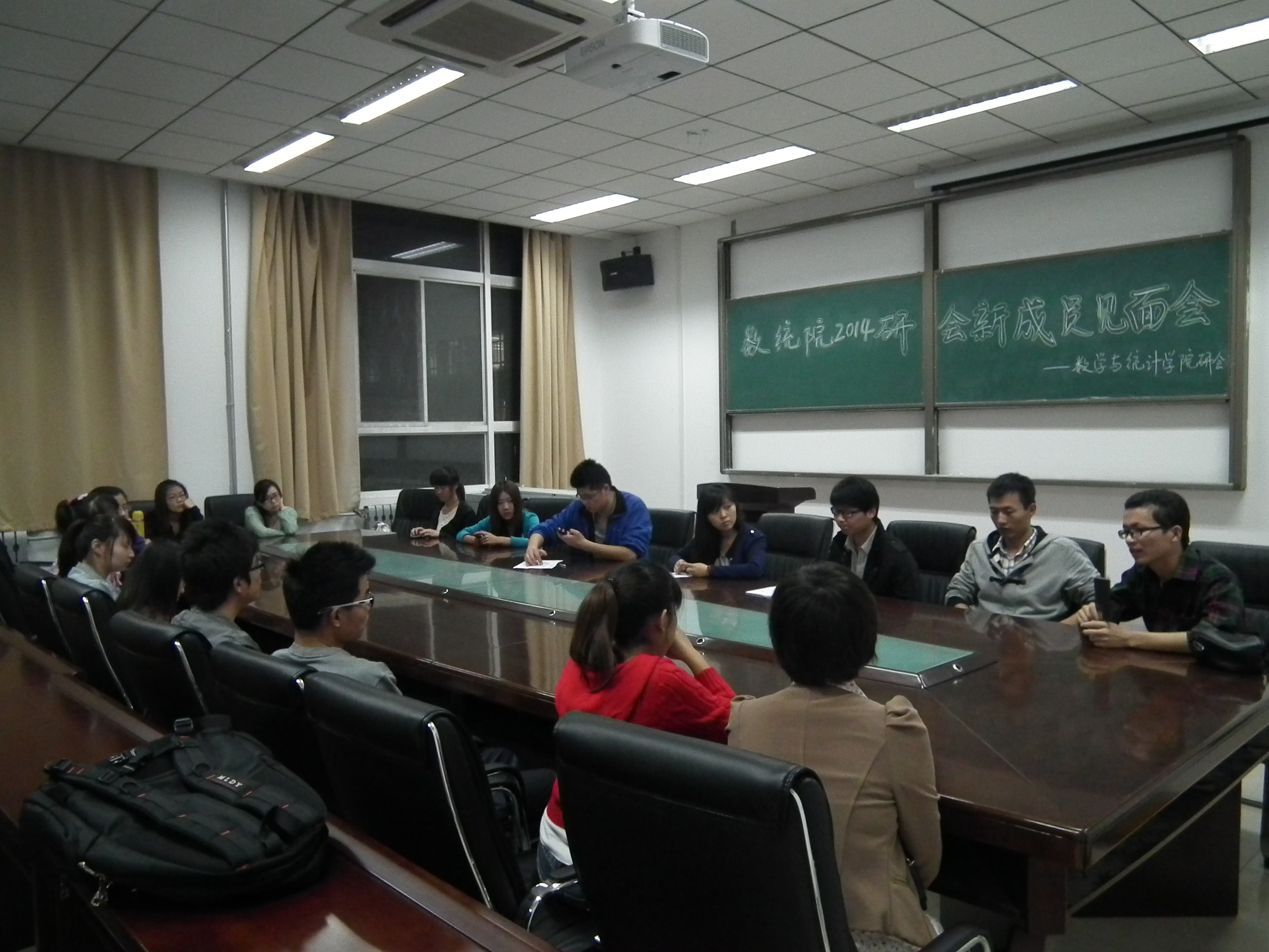 9月18日晚21:30,见面会正式开始,首先,研会组织部部长李宾向大家介绍了研究生会的部门组成、部门职能和人员设置等,并简要安排了接下来的工作。接下来,各部部长分别向大家详细介绍了每个部门,包括部门构成、工作内容以及工作计划等,随后新成员依次作了自我介绍并谈了对工作的建议。最后各部门内部讨论,各部长针对每位同学的特长安排了具体工作,对于新成员提出的问题也一一解答,现场氛围十分热烈。