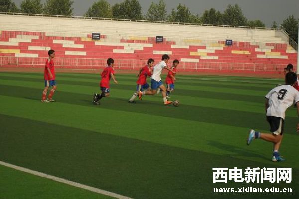 西电新闻网讯(通讯员 冯昊程)2011年6月12日下午六时整,在紧张的学习之余,由西电理学院团委举办的“四校联谊”足球比赛在绿茵操场上紧锣密鼓地在政法的绿茵场上火热进行。此次比赛的四所学校分别为西安电子科技大学和西安邮电学院、文理学院和西安政法大学。学校理学院代表队参加了此次足球比赛。
