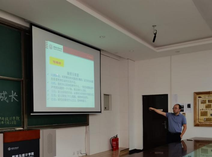 刘振华教授以研究生的“四得”为主题进行此次分享。第一,关于论文文献如何查找的问题,刘教授鼓励学生查阅经典著作,浏览顶会顶刊,并希望大家多看论文,从而实现量变到质变的飞跃。第二,关于论文如何阅读的问题,刘教授谈到:在阅读文献正文之前,要提出疑惑,然后浏览下文;在阅读论文的过程中,要通过文献的题目和摘要,发现亮点和创新点,及时做好笔记记录下来,记住作者发现问题、解决问题的办法和思维。第三,在日常生活中,刘教授鼓励学生多思考,在交流中激发灵感,从而提高论文的创新性。第四,关于如何写论文的问题,刘教授向大家推荐了“学位与写作”公众号,并说道,在写作论文时,要将题目浓缩成精华,呈现摘要的亮点和创新点。最后,刘教授提出了摘要五要素:问题陈述、动机、方法、结果和结论,然后详细讲解了其中的具体要求,同学们纷纷拿出纸笔记录,收获颇丰。刘教授的分享具体、生动,既展示了作为一名数学教授的智慧,也充分展示了严谨、积极的学习态度。此类活动解决了同学们在科研论文和日常生活方面的困扰,使同学们更加明确今后的努力方向。