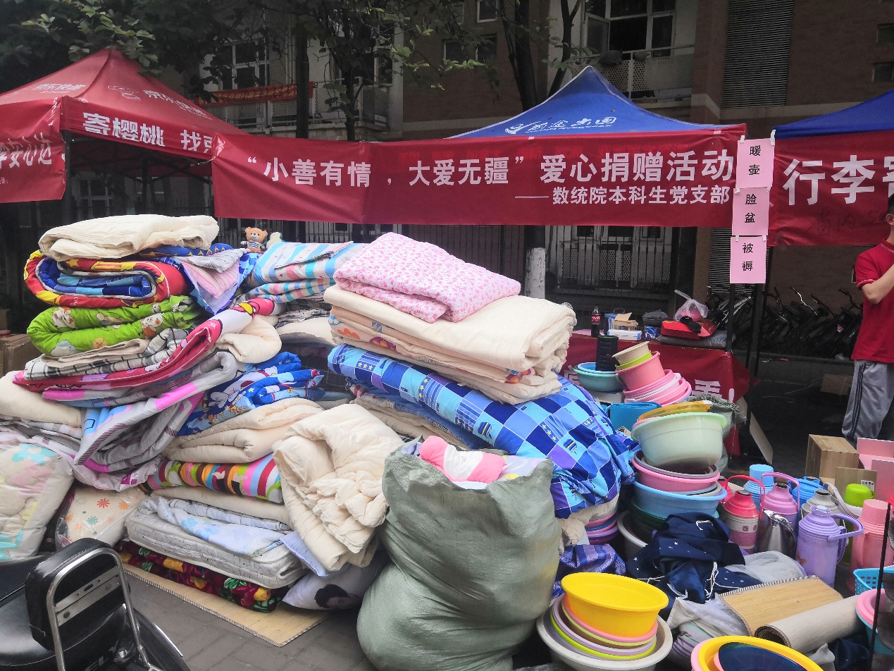 小善有情凉夏日,大爱无疆沁心脾。每年的毕业生离校之际,数统院本科生党支部都会在学生公寓旁,开展“‘小善有情,大爱无疆’——毕业生爱心捐赠活动”,并通过六年风雨无阻的坚守,逐步成为校园内一道亮眼的风景线。