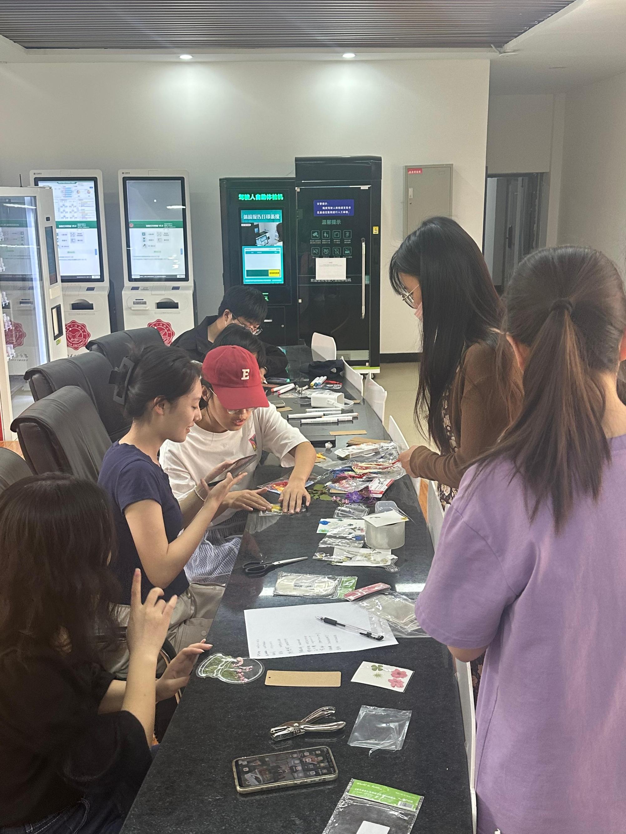 在活动现场,工作人员精心准备了空白卡纸、压花、彩笔、打孔器、挂穗等多样的手工材料,参与者们可以自由创作属于自己的个性书签。大家在书签上或是画上精美的图案,或是写下发人深省的名言,每一个书签都成为表达个性和情感的载体,为大家的研究生生活增加一抹亮色。