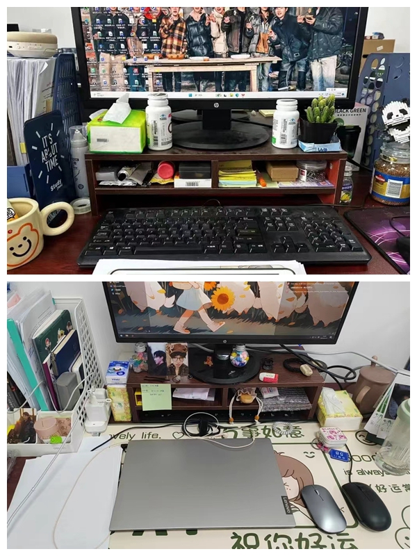 若将宿舍视为研究生的第一个家,那么工位便是他们的第二个家。小小的工位,承载着日复一日的勤奋耕耘,年复一年的经历记录和见证。佟谣说:“方寸之地,皆为热爱。在这方寸之地,诉说着属于自己的故事,书写着自己的青春”;时海霞说:“每当看到自己的工位充满绿植和温馨装饰时,一天的疲惫也好像被治愈了,紧张的学习和工作也变得轻松愉悦起来。” 每个人都在精心打造属于自己的这个小空间,每个工位都有属于它独特的故事。