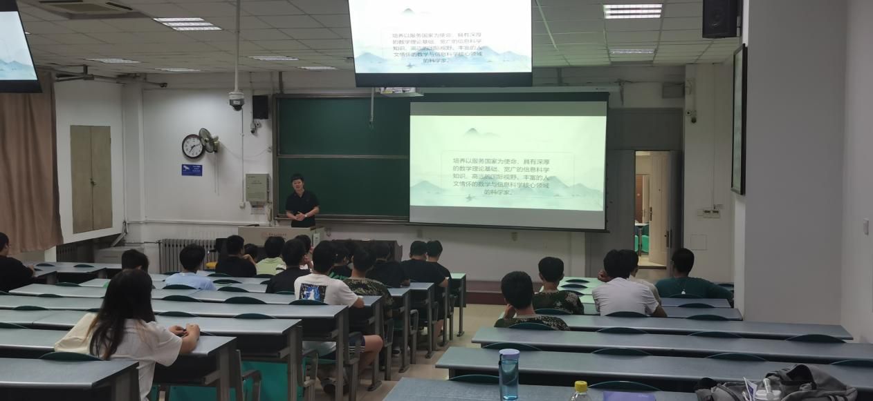 王帅杰老师与同学们分享了自己的学习经历,接着与同学们一起熟悉培养目标,期望同学们能够成长为具有家国情怀、扎实数学理论基础以及丰富人文素养的人才。此外,王老师还就专业知识的学习方法与同学们进行了交流分享。最后,通过破冰活动,师生之间更加了解。