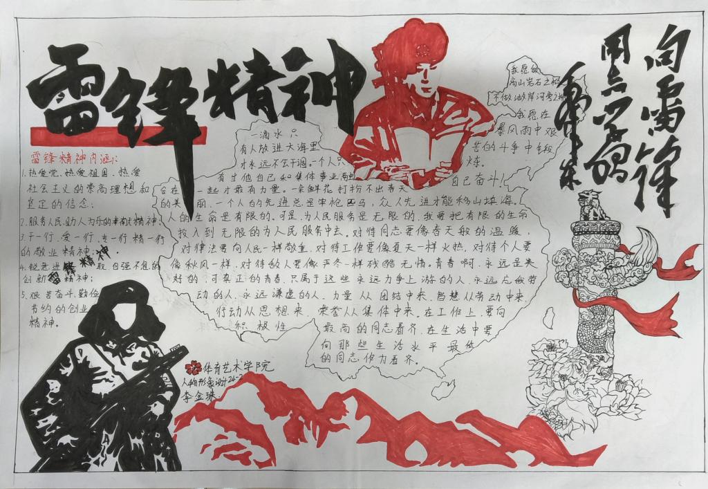 本次手抄报设计活动不仅为同学们搭建了展示个人才华的舞台,更让雷锋精神深深扎根于同学们的内心深处。通过绘制手抄报,同学们对奉献、友爱、互助、进步的精神内涵有了更为透彻地理解。一幅幅精美的手抄报,不仅展示了同学们的才艺,更传播了雷锋精神。它们时刻激励着同学们在日常生活中积极践行雷锋精神,争做传承雷锋精神的新时代青年。