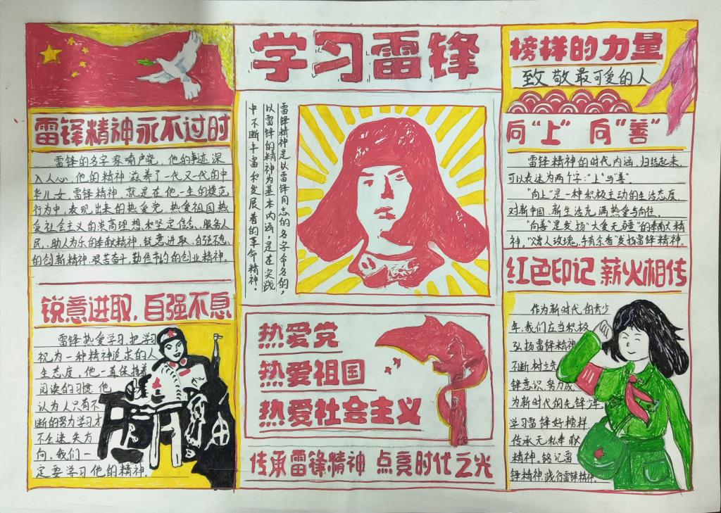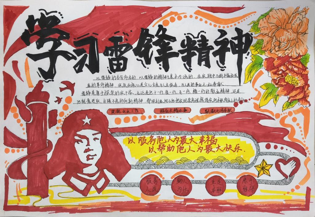 活动中,同学们深入挖掘雷锋事迹、名言等资料,精心设计手抄报。这些作品色彩鲜艳、内容丰富,有的以图片形式展现雷锋的助人为乐精神,有的则以图文并茂的方式介绍雷锋精神的时代价值。