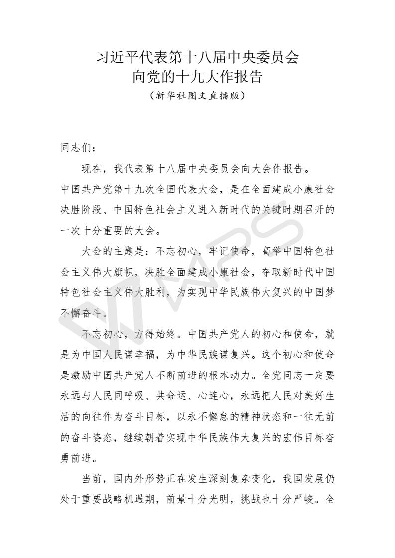 现将报告全文整理如下,请各系部积极组织师生认真研读,坚持以习近平总书记系列重要讲话精神为指导,立德树人,德法